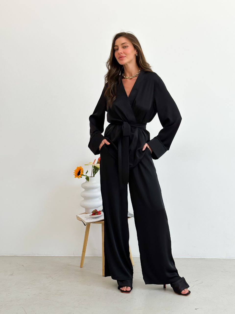 Удобный и модный костюм двойка шелк Армани черный