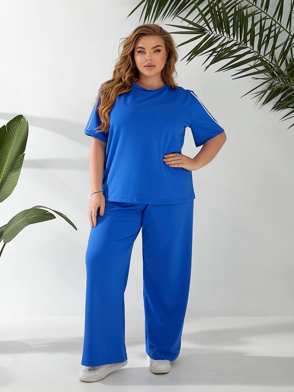 Удобный костюм-двойка: брюки свободного кроя с лентой+футболка (двунитка) электрик