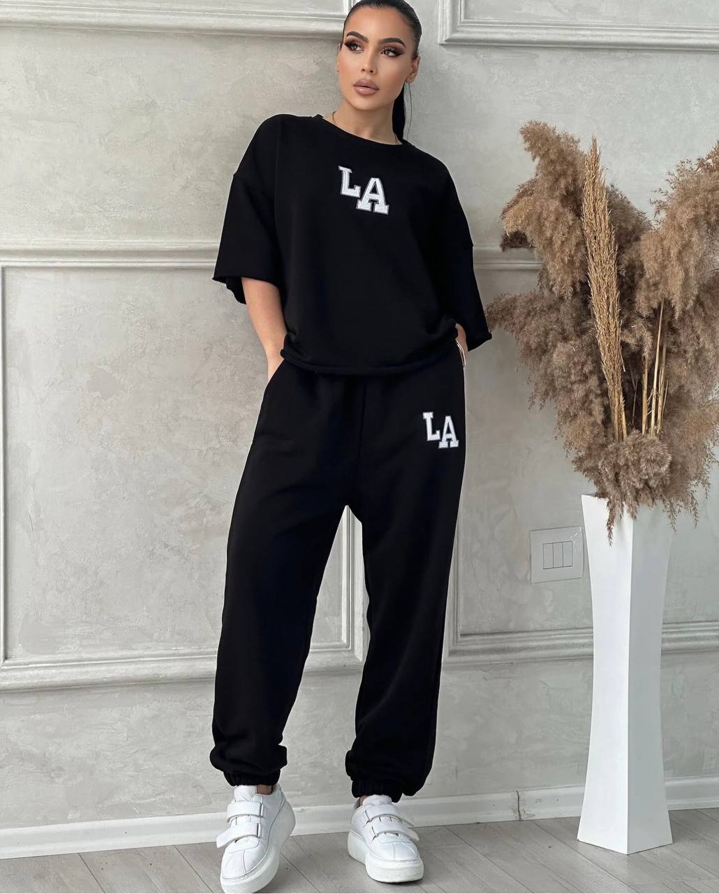Будьте першим, хто залишив відгук “Удобный костюм свободного фасона с накатом (футболка+штаны) черный”“
