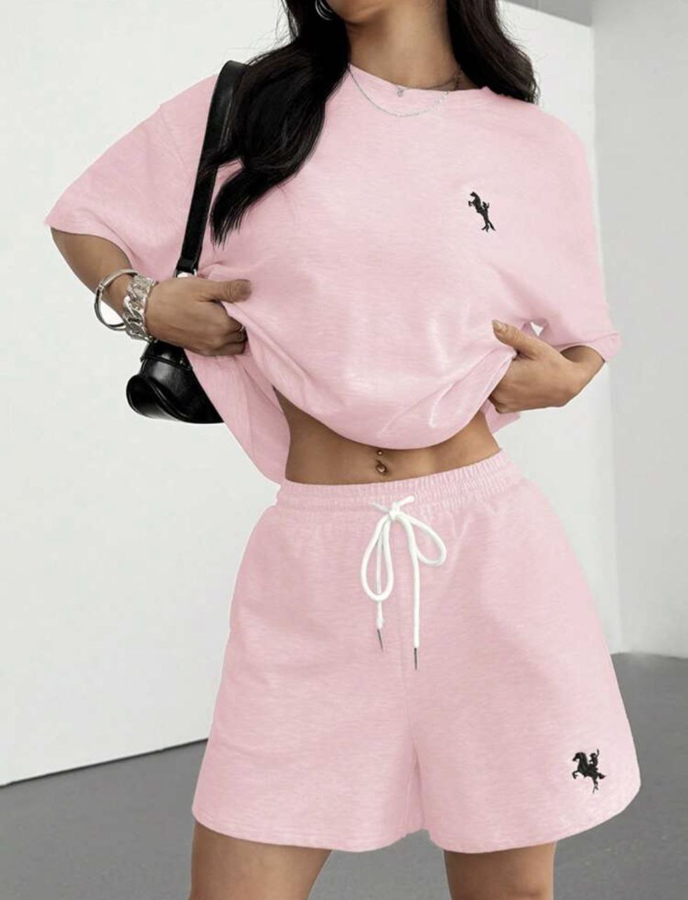 Будьте першим, хто залишив відгук “Удобный повседневный костюм с логотипом (футболка+шорты) розовый”“