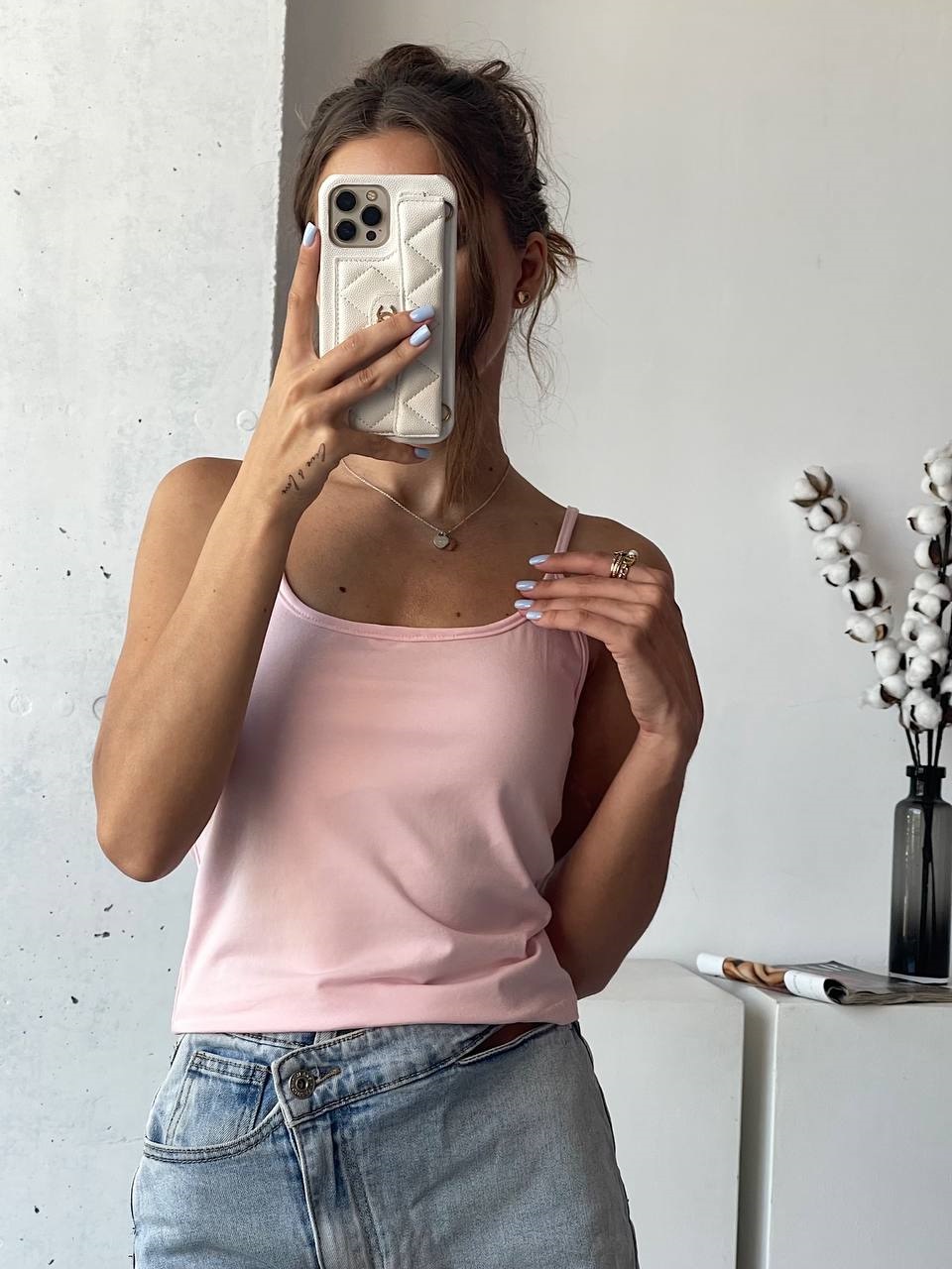 Укороченная майка с регулируемыми бретельками нежно-розовый