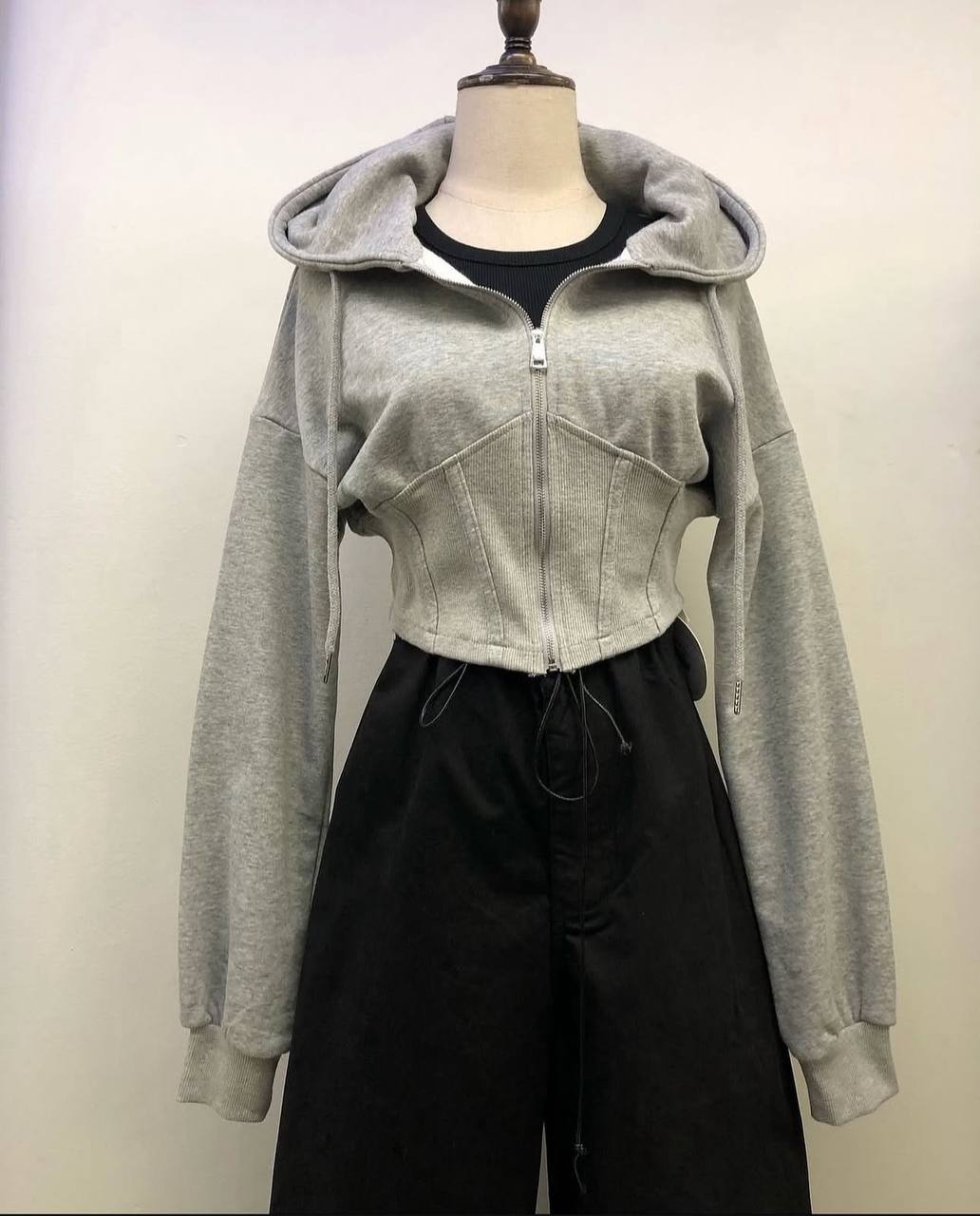Головна » Магазин » Одяг » Кофти, толстовки, худі, светри » Укороченное худи на молнии (двунитка) меланж