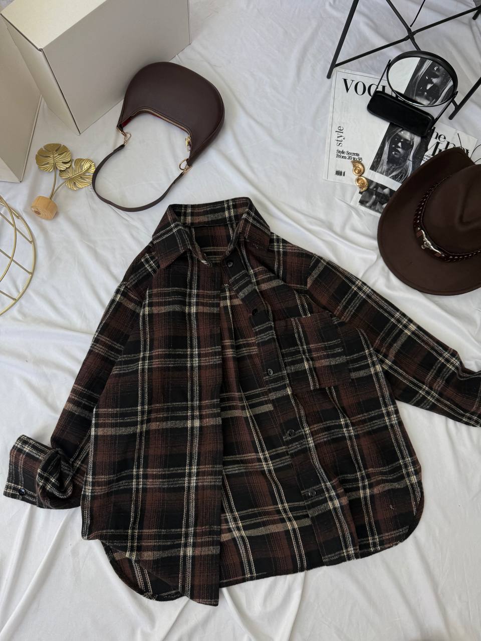 Универсальная базовая рубашка на пуговицах (ворсистая байка) шоколад
