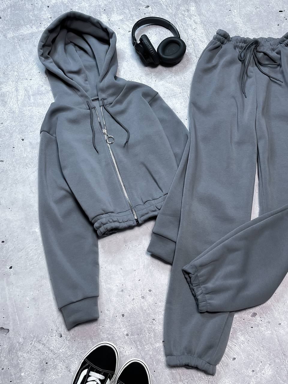 Утепленный костюм оверсайз (зеп кофта и джогеры) светлый графит