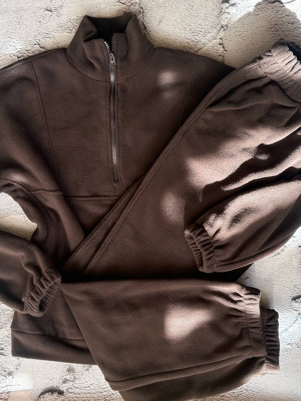 Будьте першим, хто залишив відгук “Уютный костюм флисовый: толстовка+штаны на манжетах шоколад”“