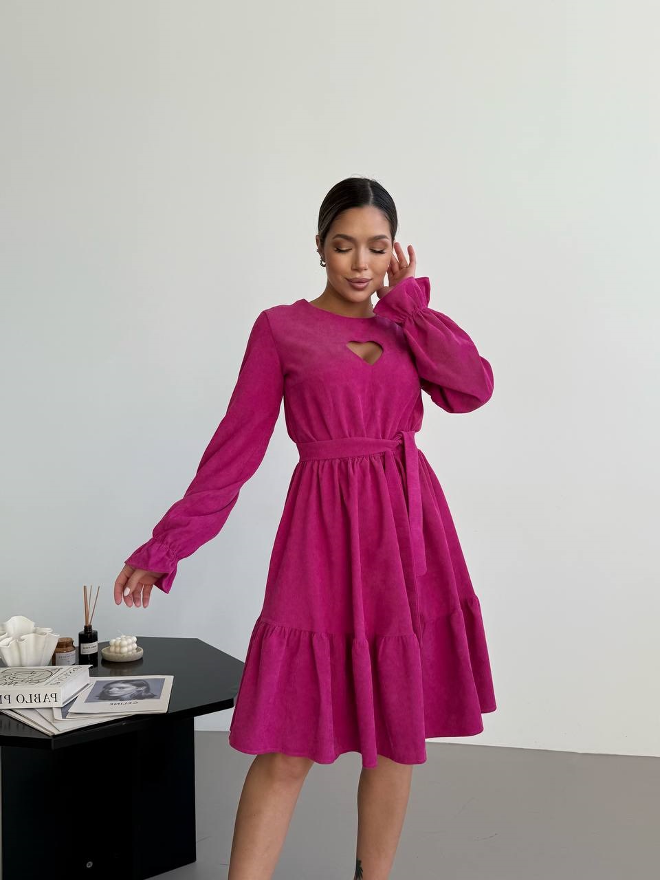 Будьте першим, хто залишив відгук “Вельветовое платье с поясом+изящный вырез в форме сердца на груди+воланом по низу малина”“