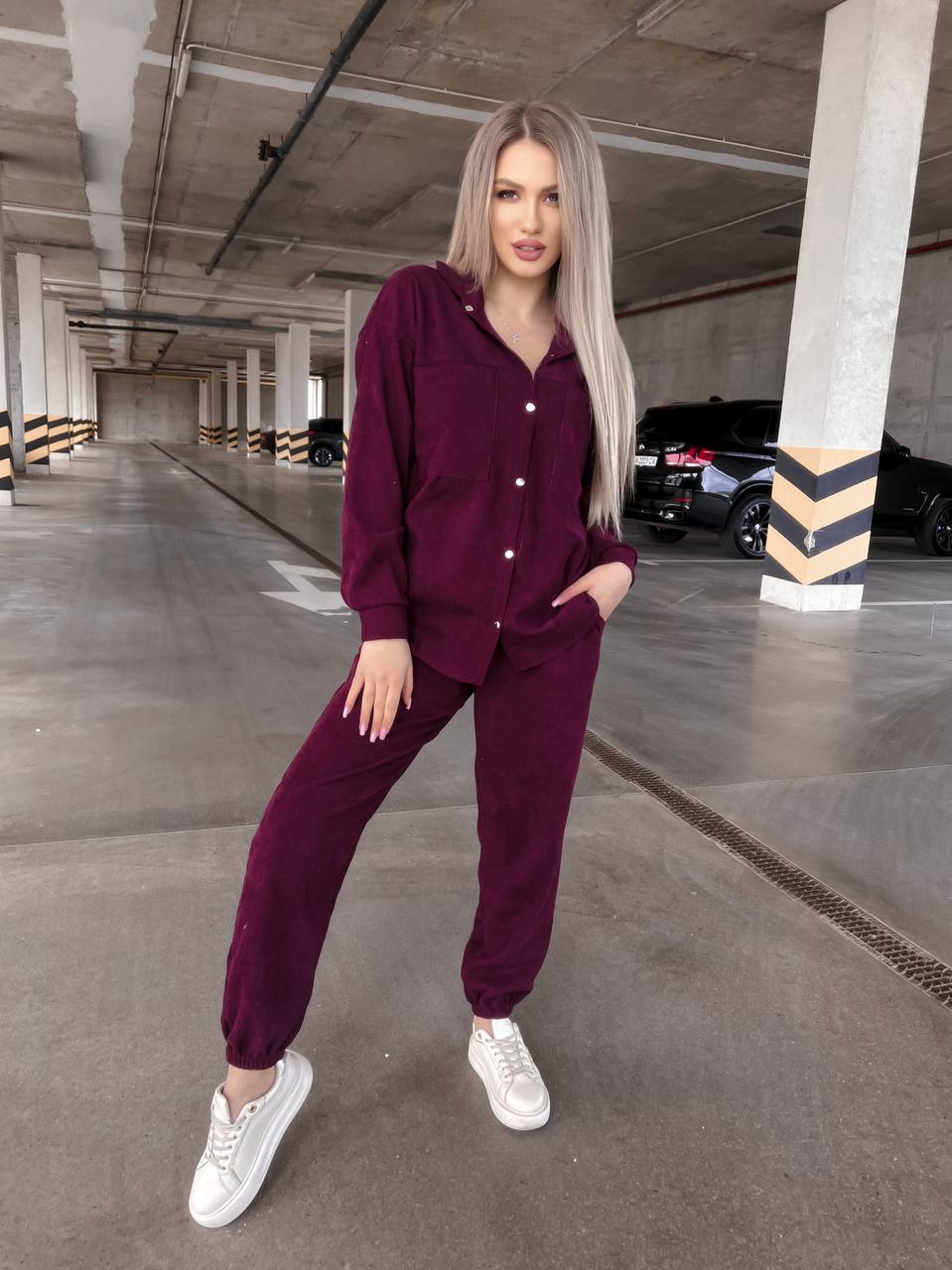 Будьте першим, хто залишив відгук “Вельветовый брючный костюм: рубашка на кнопках+штаны с карманами марсала”“