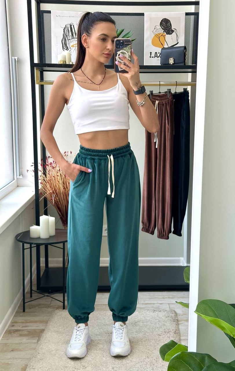 Головна » Магазин » Одяг » Жіночі штани джинси штани гетри » Велюровые брюки с манжетой на резинке изумруд