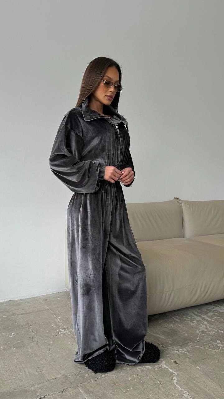 Головна » Магазин » Одяг » Комбінезон » Велюровый комбинезон (кофта на молнии+свободные брюки) графит