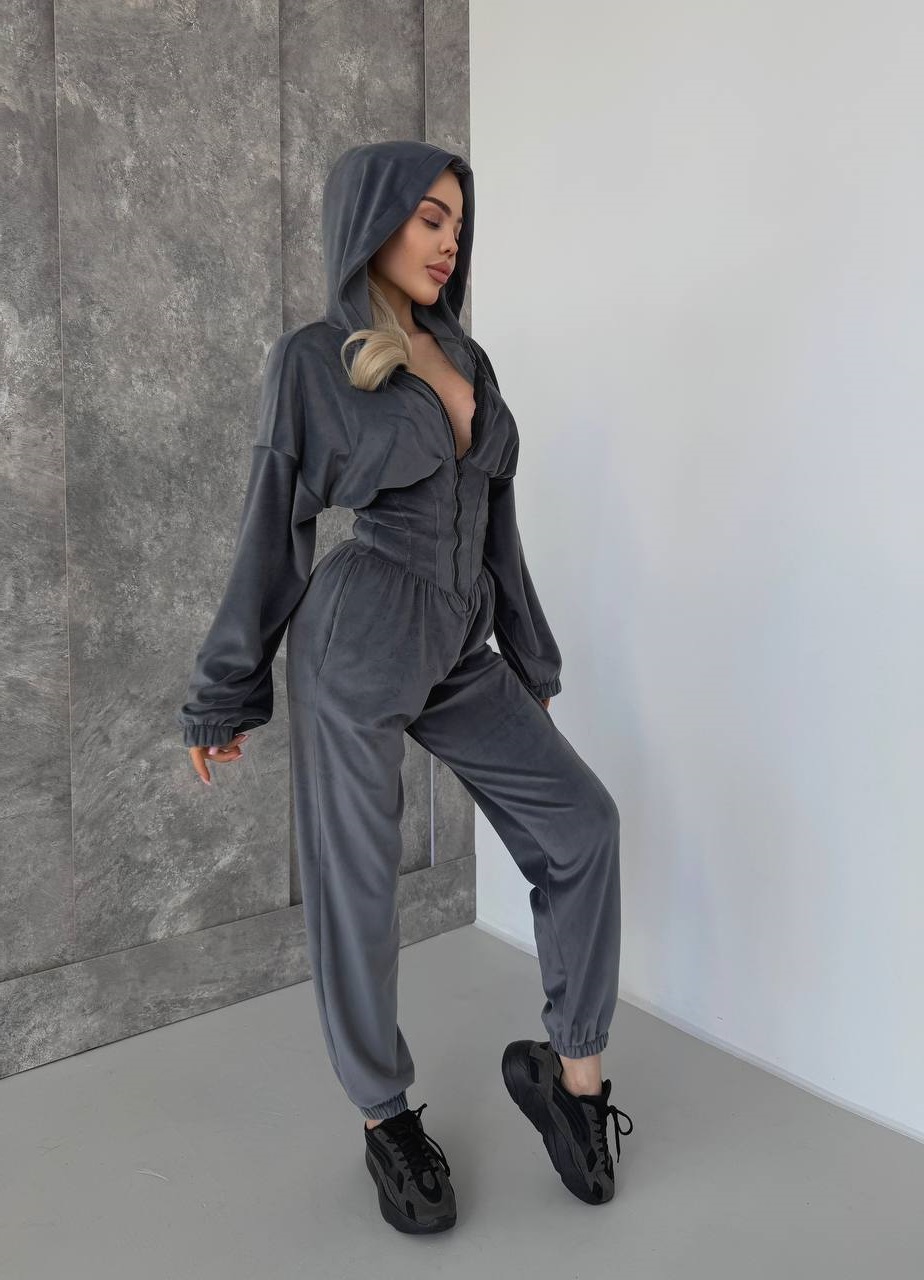 Головна » Магазин » Одяг » Комбінезон » Велюровый комбинезон на молнии с капюшоном+карманами графит