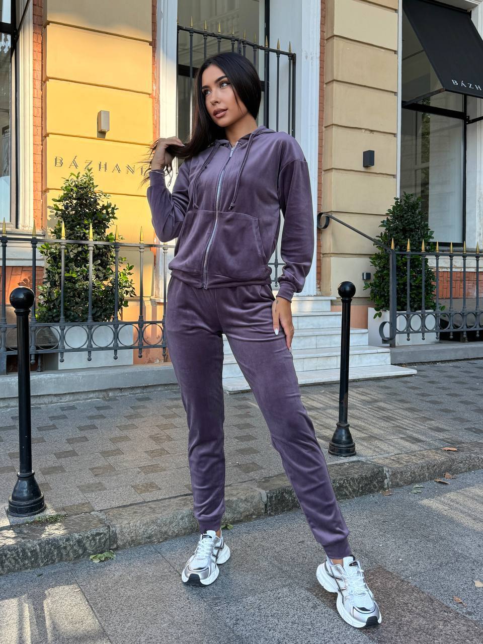 Головна » Магазин » Одяг » Жіночі спортивні костюми » Велюровый костюм двойка (Кофта на змейке с карманами+Брюки с карманами) сливовый
