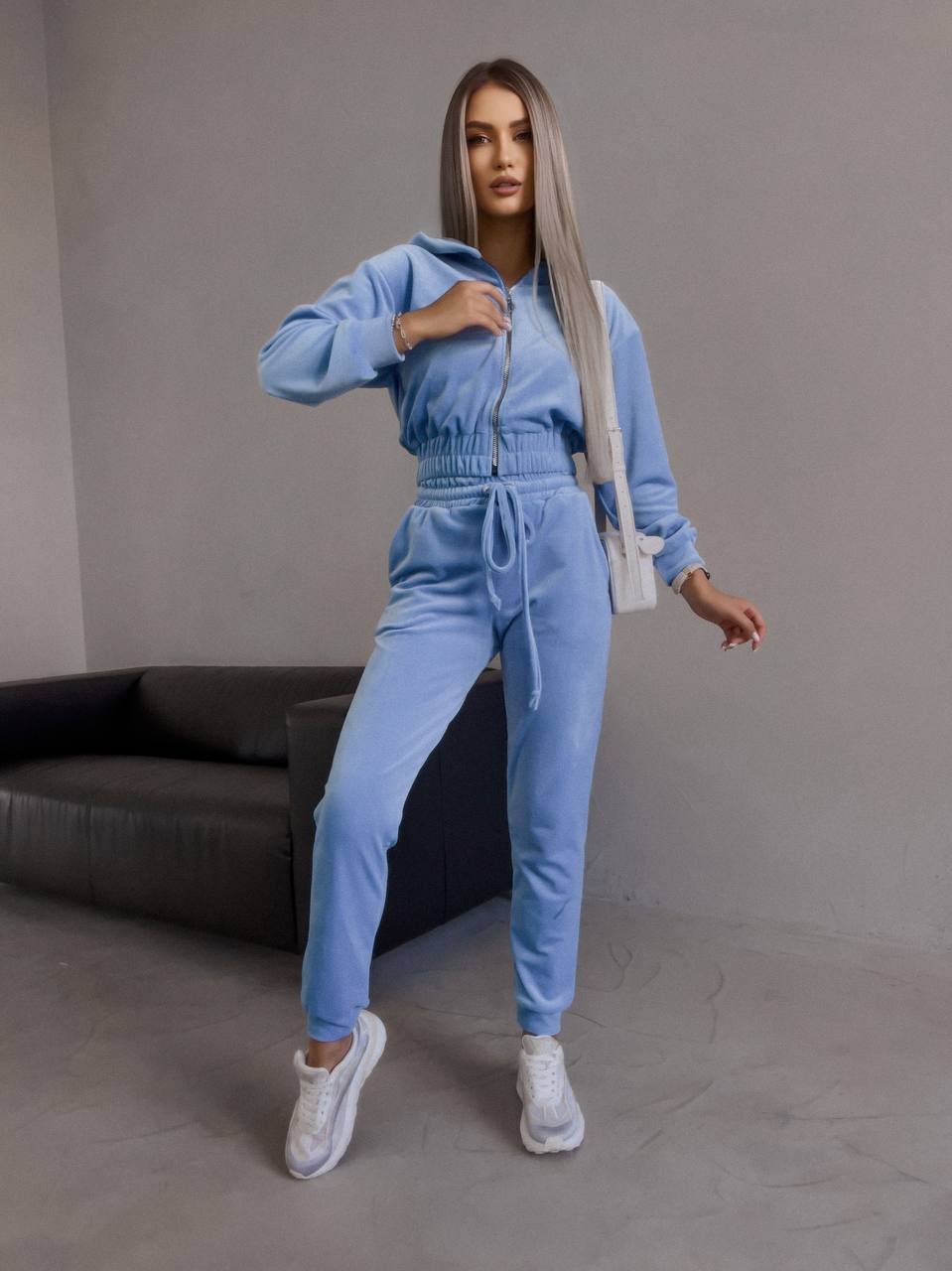 Будьте першим, хто залишив відгук “Велюровый костюм двойка: кофта на змейке с капюшоном+штаны с манжетами голубой”“