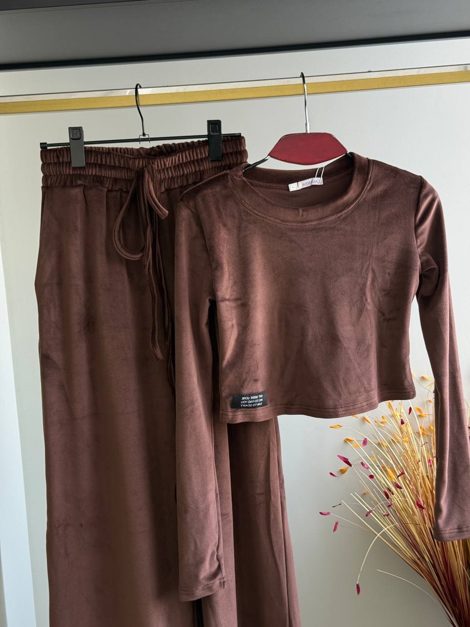 Головна » Магазин » Одяг » Жіночі спортивні костюми » Велюровый костюм (футболка с длинным рукавом+свободные брюки) шоколад
