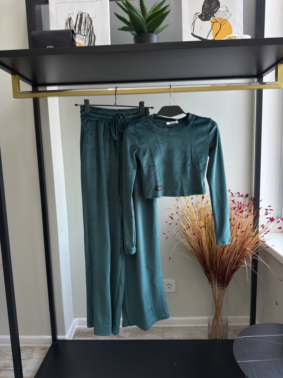 Головна » Магазин » Одяг » Жіночі спортивні костюми » Велюровый костюм (футболка с длинным рукавом+свободные брюки) изумруд