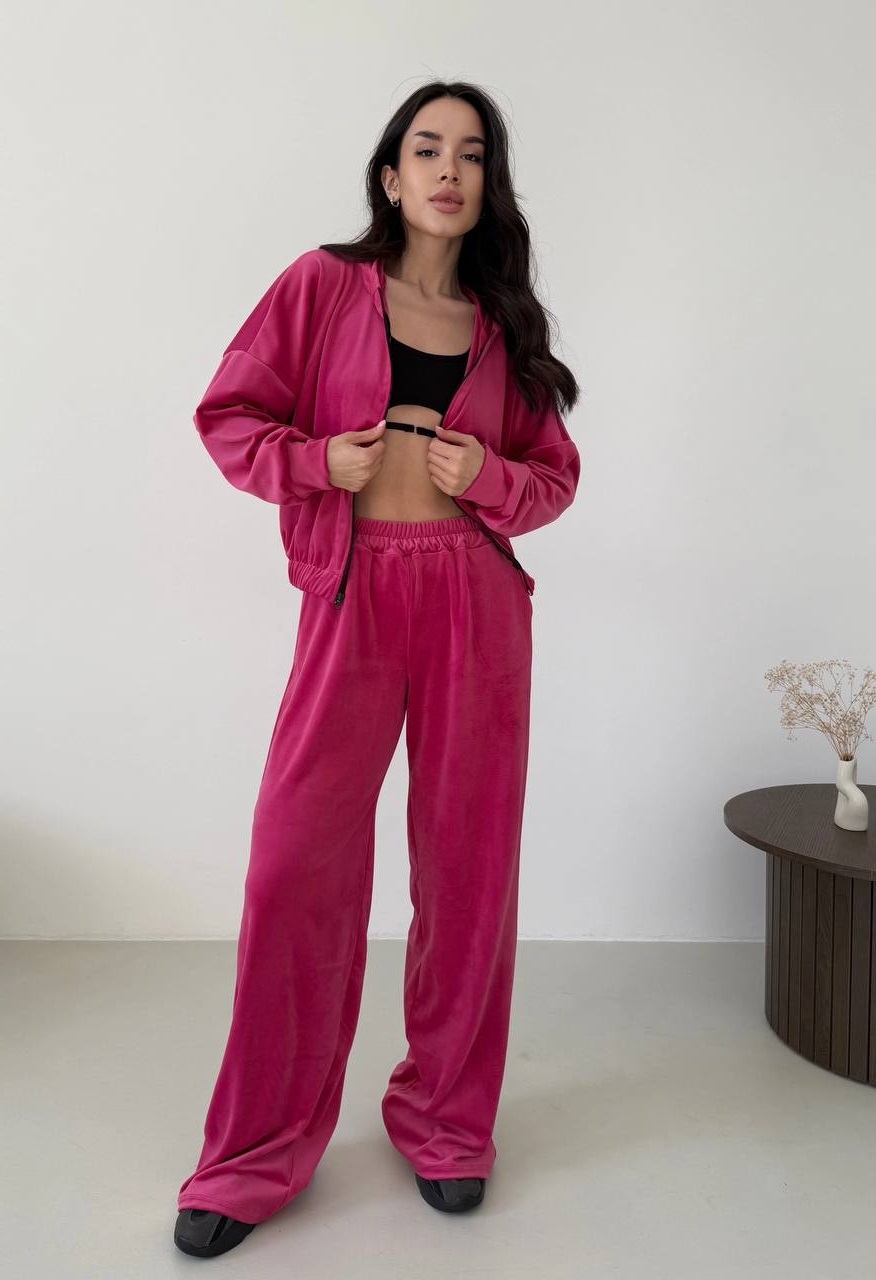 Головна » Магазин » Одяг » Жіночі спортивні костюми » Велюровый костюм (кофта на молнии с капюшоном+свободные брюки) малина