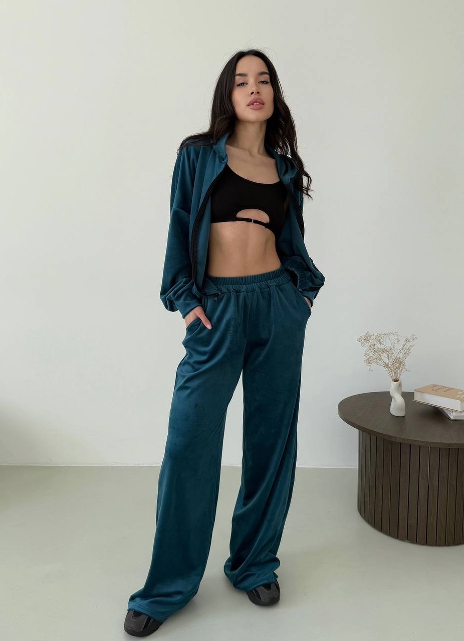 Головна » Магазин » Одяг » Жіночі спортивні костюми » Велюровый костюм (кофта на молнии с капюшоном+свободные брюки) темная бирюза