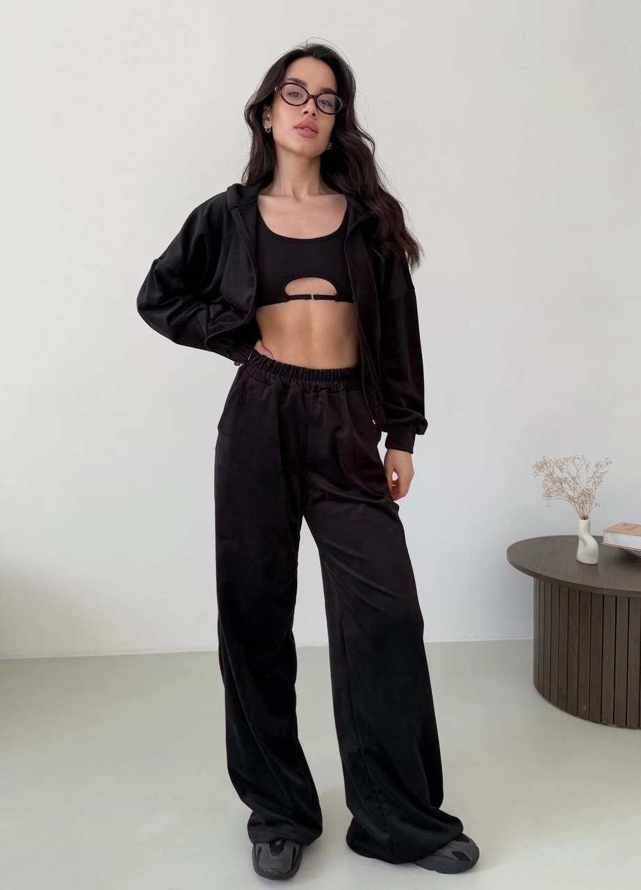 Головна » Магазин » Одяг » Жіночі спортивні костюми » Велюровый костюм (кофта на молнии с капюшоном+свободные брюки) черный