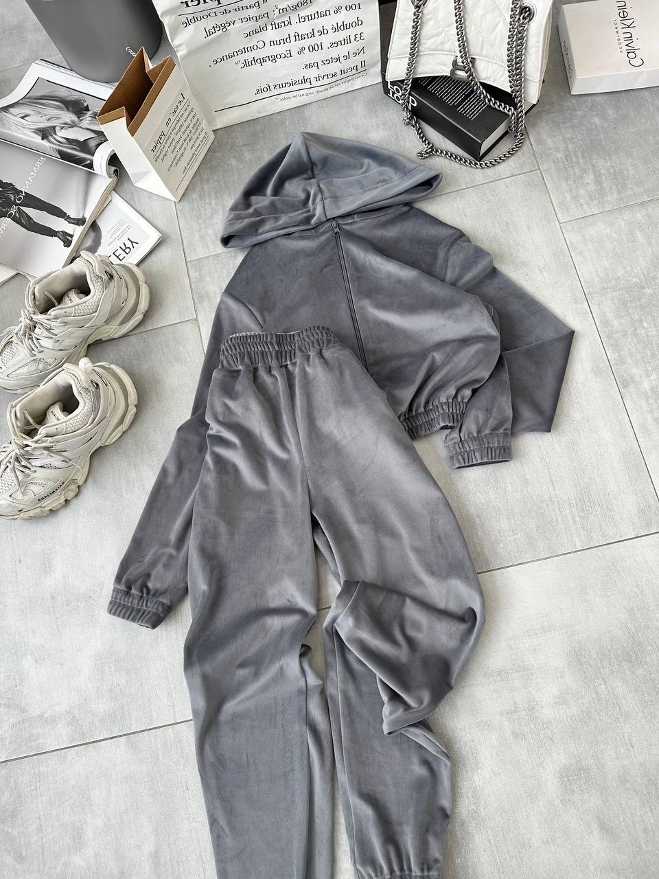 Велюровый костюм (кофта на молнии с капюшоном+брюки манжета по низу на резинке) графит