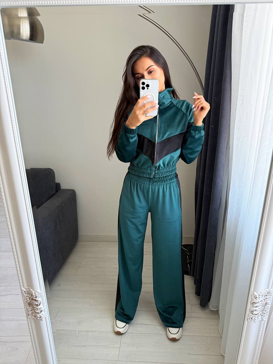 Головна » Магазин » Одяг » Жіночі спортивні костюми » Велюровый Костюм с акцентными вставками (кофта на молнии+брюки) изумруд