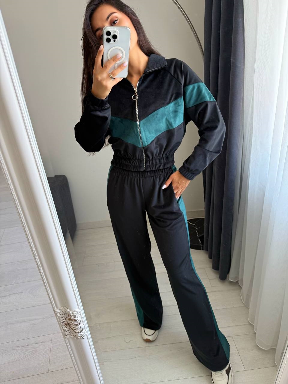 Головна » Магазин » Одяг » Жіночі спортивні костюми » Велюровый Костюм с акцентными вставками (кофта на молнии+брюки) черный