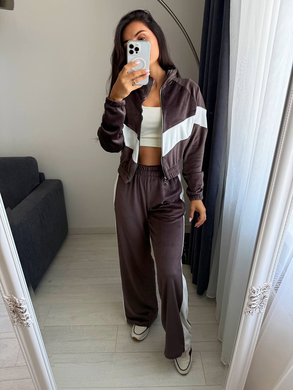 Головна » Магазин » Одяг » Жіночі спортивні костюми » Велюровый Костюм с акцентными вставками (кофта на молнии+брюки) шоколад