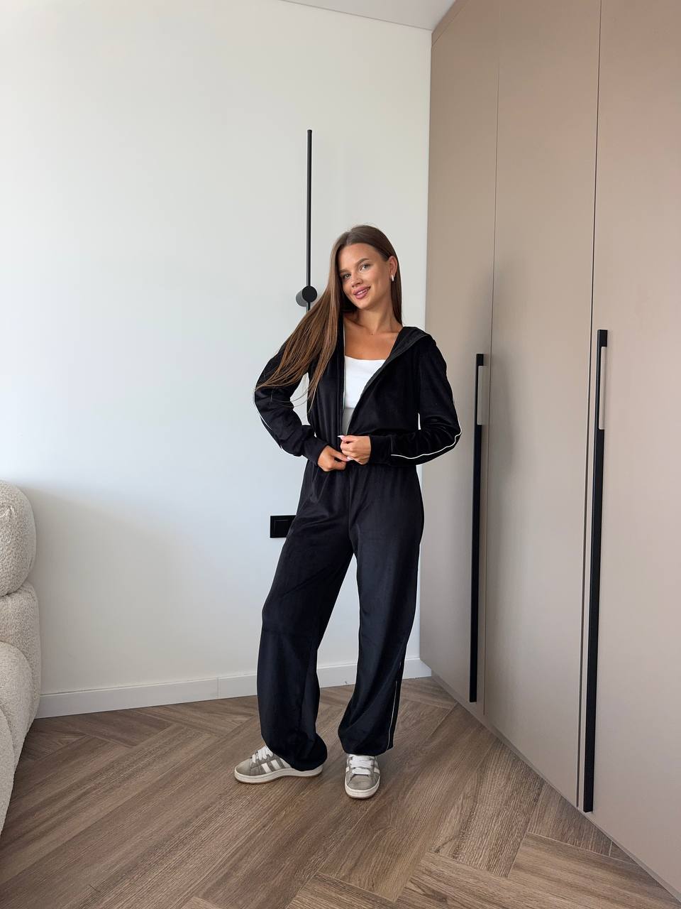 Велюровый костюм с кантом (брюки+кофта на молнии) черный