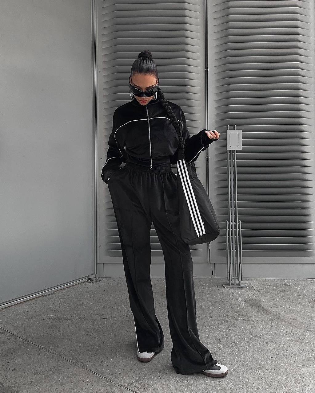Головна » Магазин » Одяг » Жіночі костюми » Велюровый костюм с кантом (укороченная кофта+брюки) черный