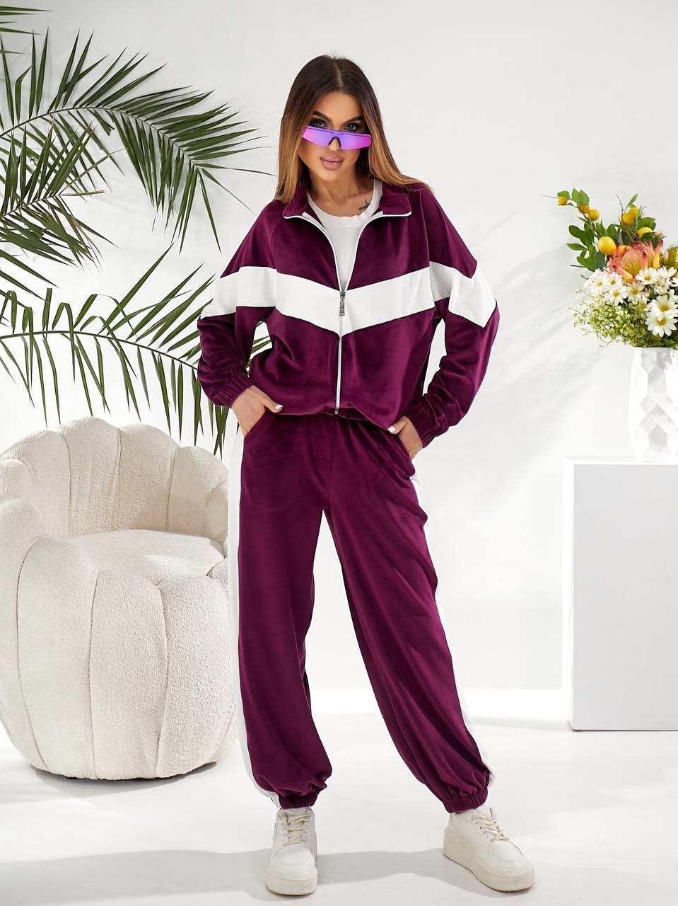 Головна » Магазин » Одяг » Жіночі спортивні костюми » Велюровый костюм с контрастными вставками (кофта на молнии+брюки с манжетой на резинке) бордо