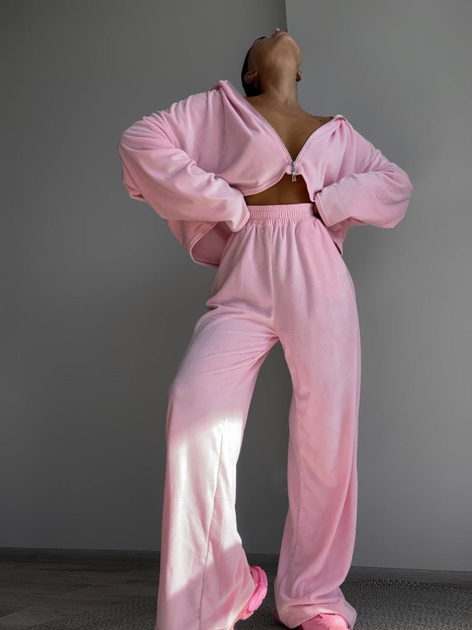 Головна » Магазин » Одяг » Жіночі спортивні костюми » Велюровый костюм тройка (топ+укороченная кофта+брюки) розовый
