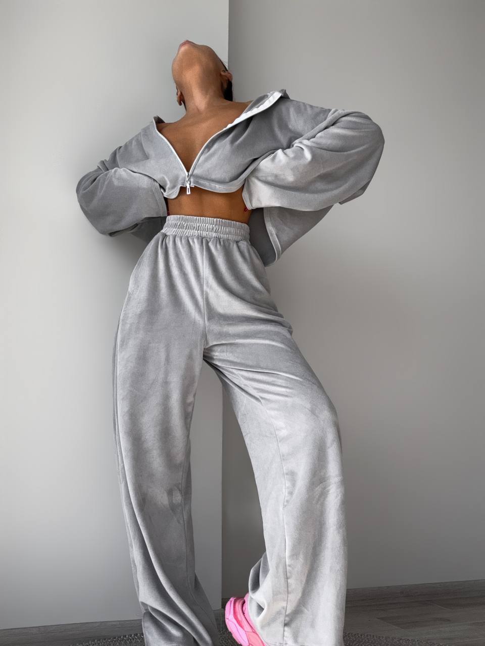 Головна » Магазин » Одяг » Жіночі спортивні костюми » Велюровый костюм тройка (топ+укороченная кофта+брюки) серый