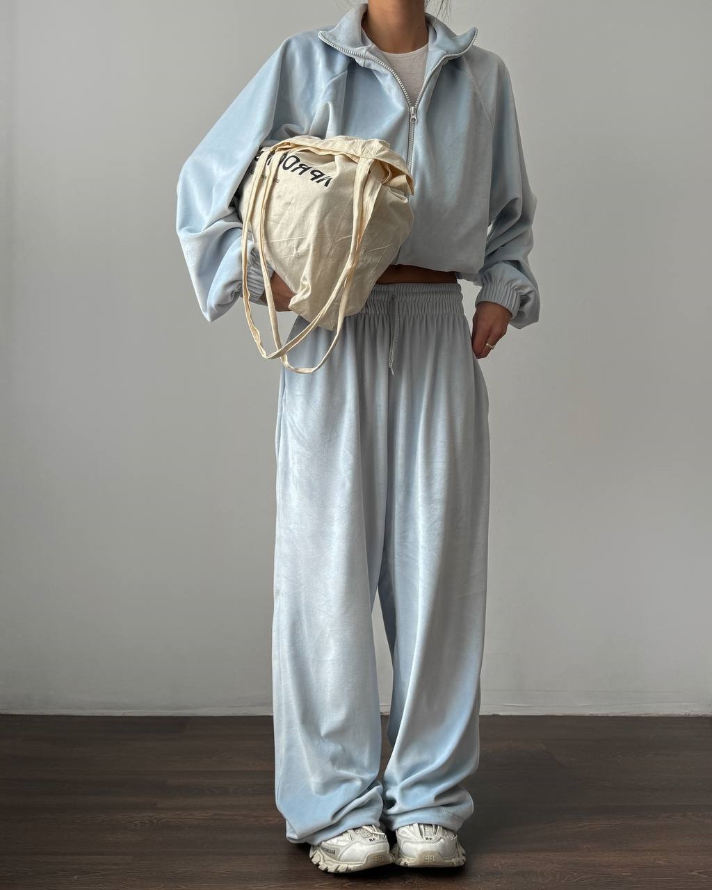 Будьте першим, хто залишив відгук “Велюровый оверсайз костюм (кофта с капюшоном+брюки с карманами) серо-голубой”“