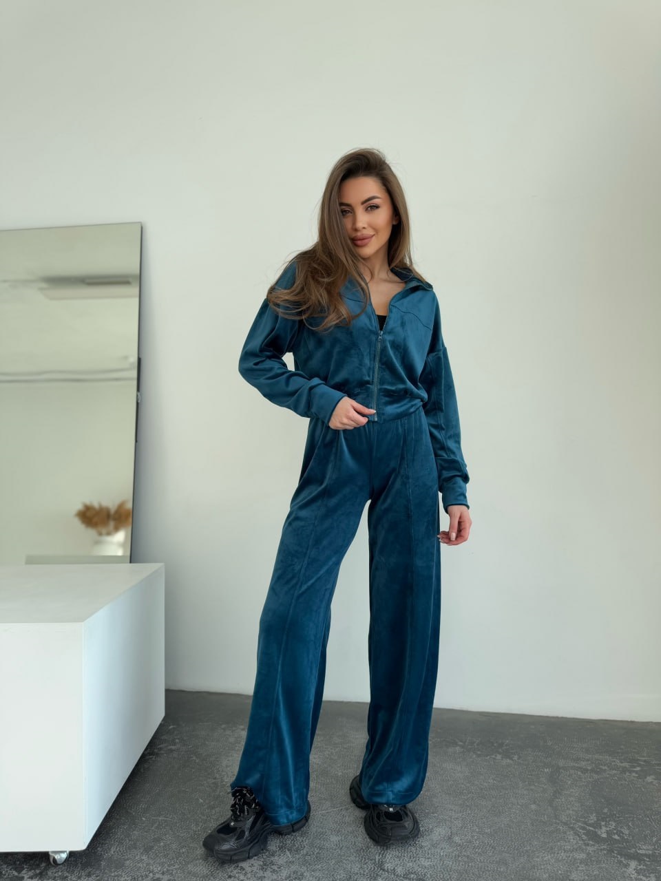 Описание: брюки паллацо и укороченная кофта на молнии под цвет ткани.