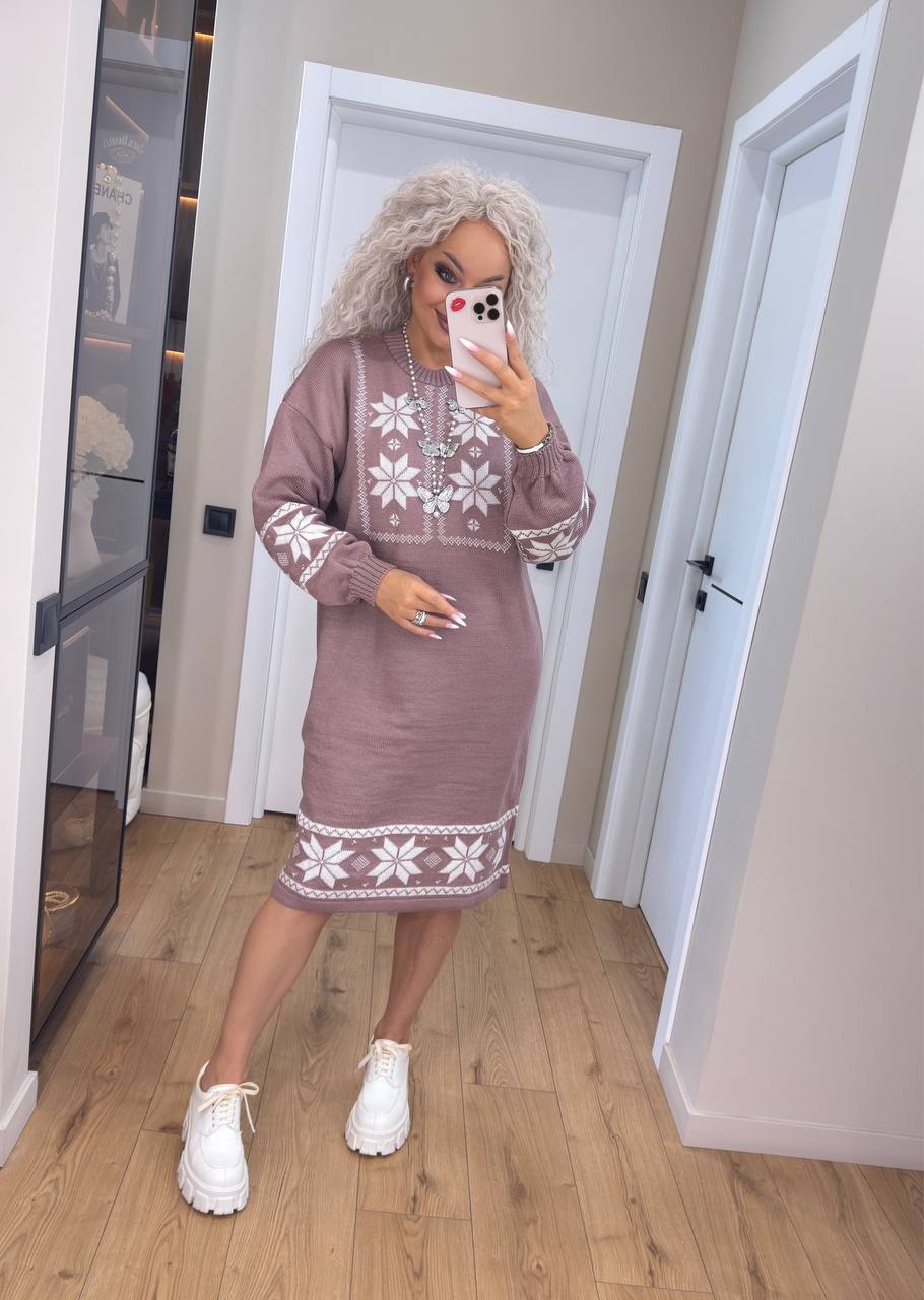 Вязаное платье свободного кроя (интерпретация вышиванки) темная пудра