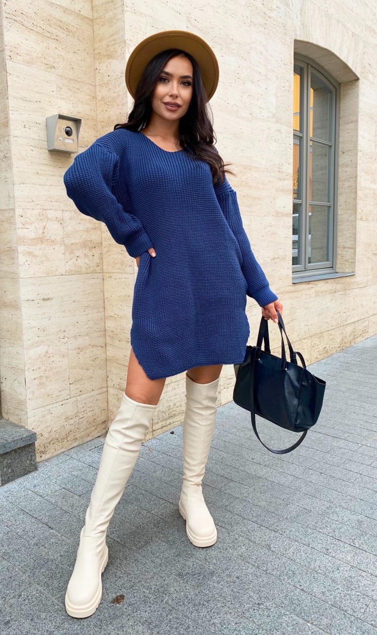 Вязаное платье-туника оверсайз джинс