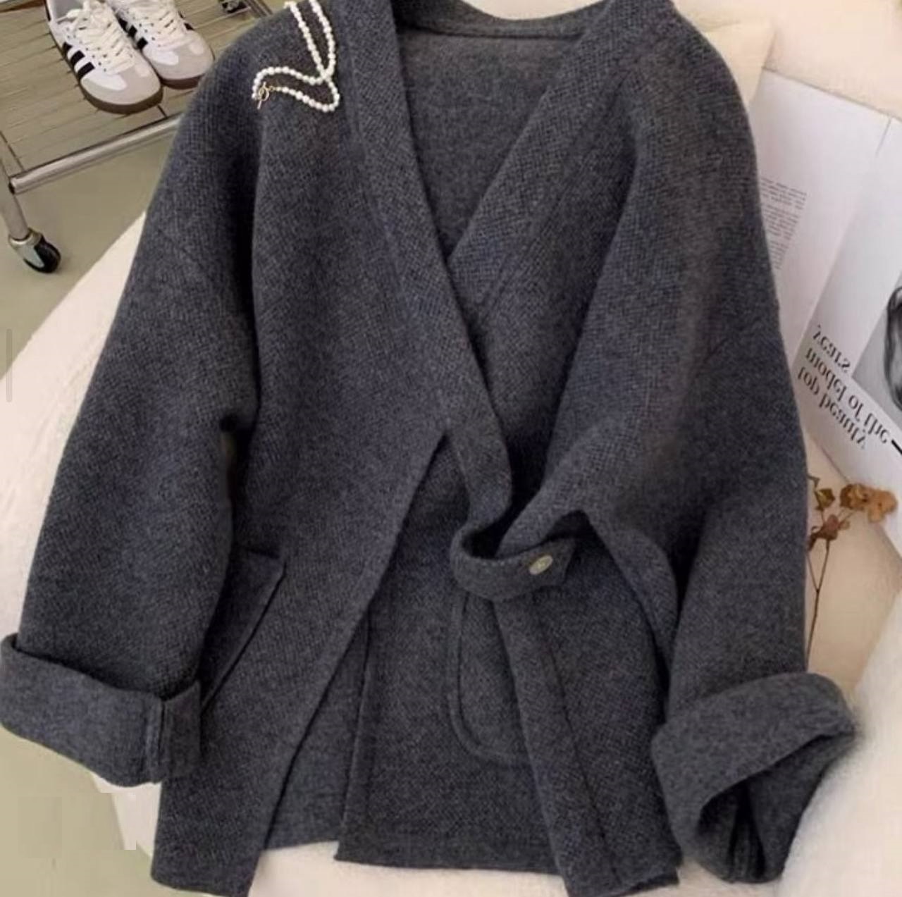 Головна » Магазин » Одяг » Кардигани » Вязаный кардиган из ангоры на запах под пояс графит