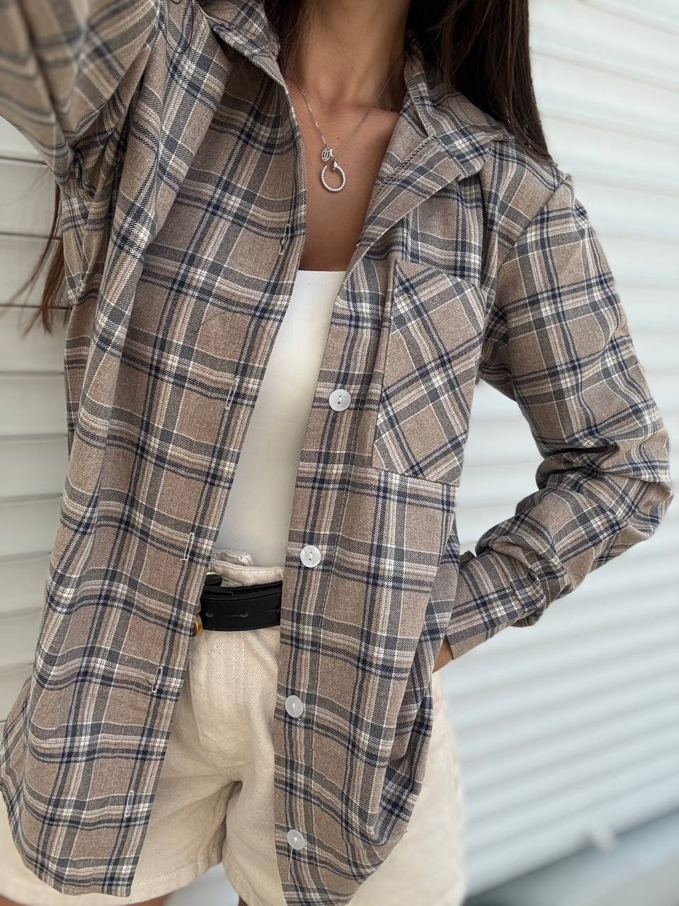 Будьте першим, хто залишив відгук “Яркая рубашка в клетку из легкой ткани шоколад+джинс”“