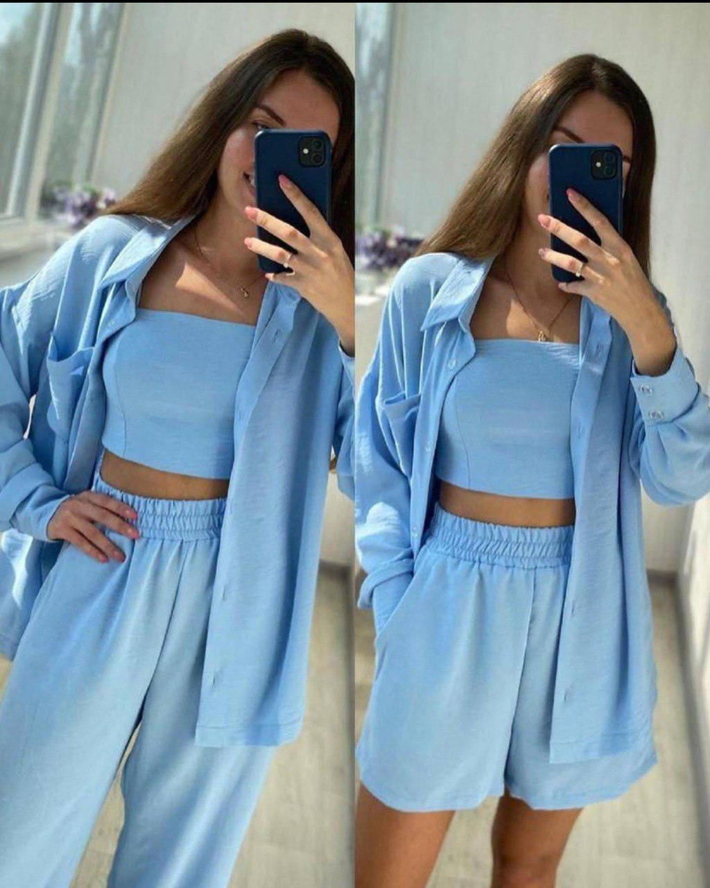 Комплект 4ка: рубашка, топ, брюки, шорты! Яркий, легкий, удобный и практичный комплект. На любой прогулке Вы будете в максимальном комфорте☀️