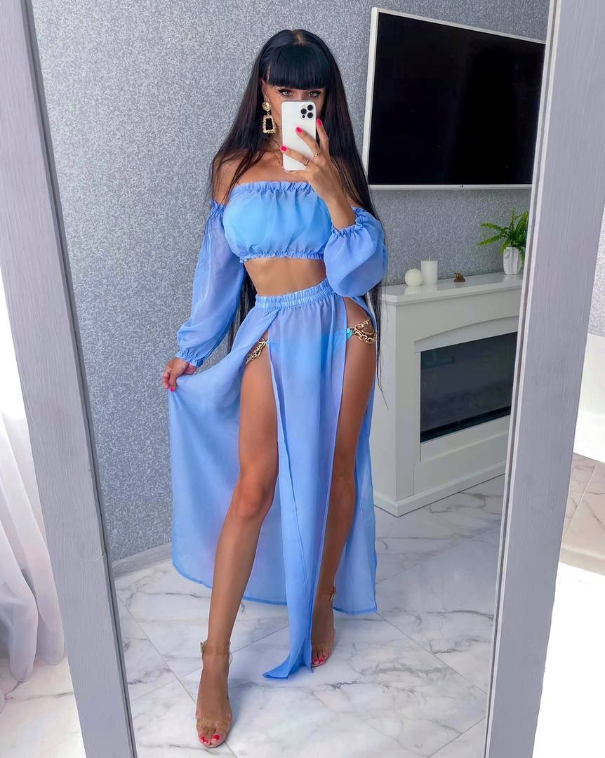 Головна » Магазин » Одяг » Сукня туніка сарафані » Яркий Пляжный костюм шифон голубой