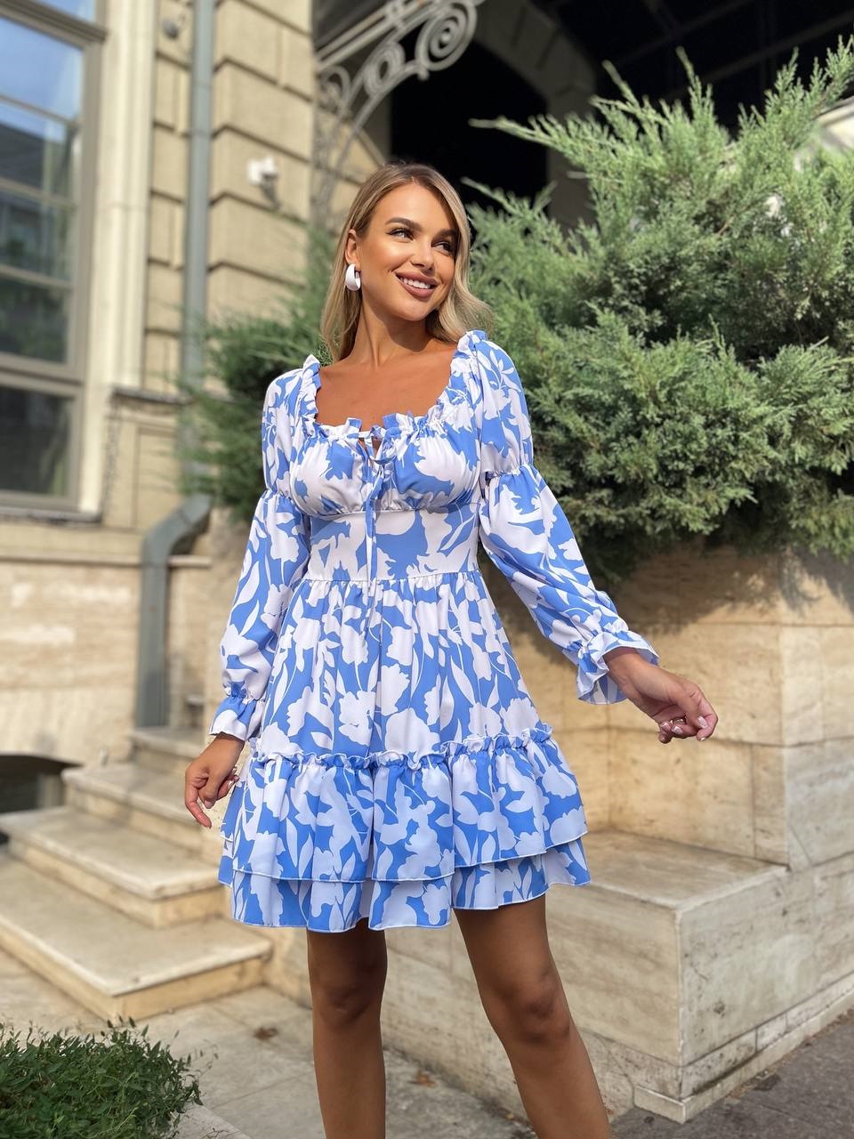 Яскрава сукня з фрілл+шиєю регулюється синьою краваткою