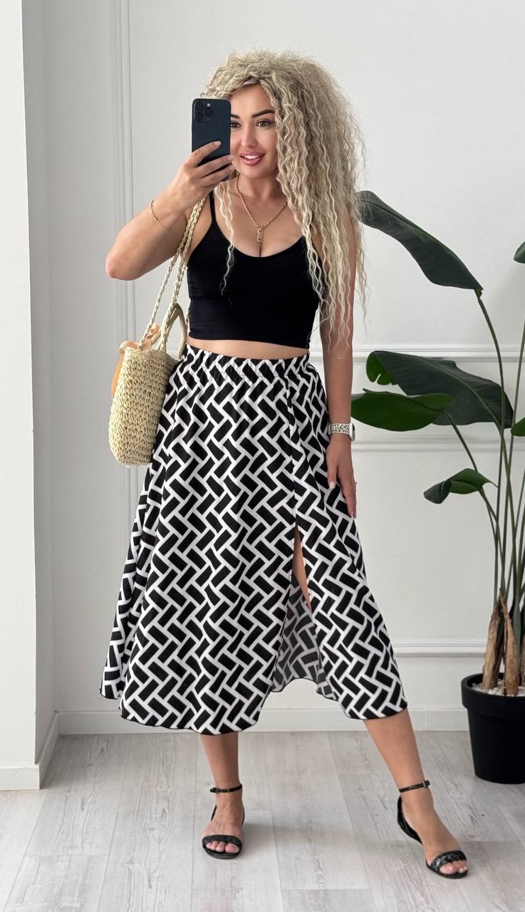 Головна » Магазин » Одяг » Спідниці шортів » Юбка А-силуэта длиной миди с разрезом по ножке бело-черный