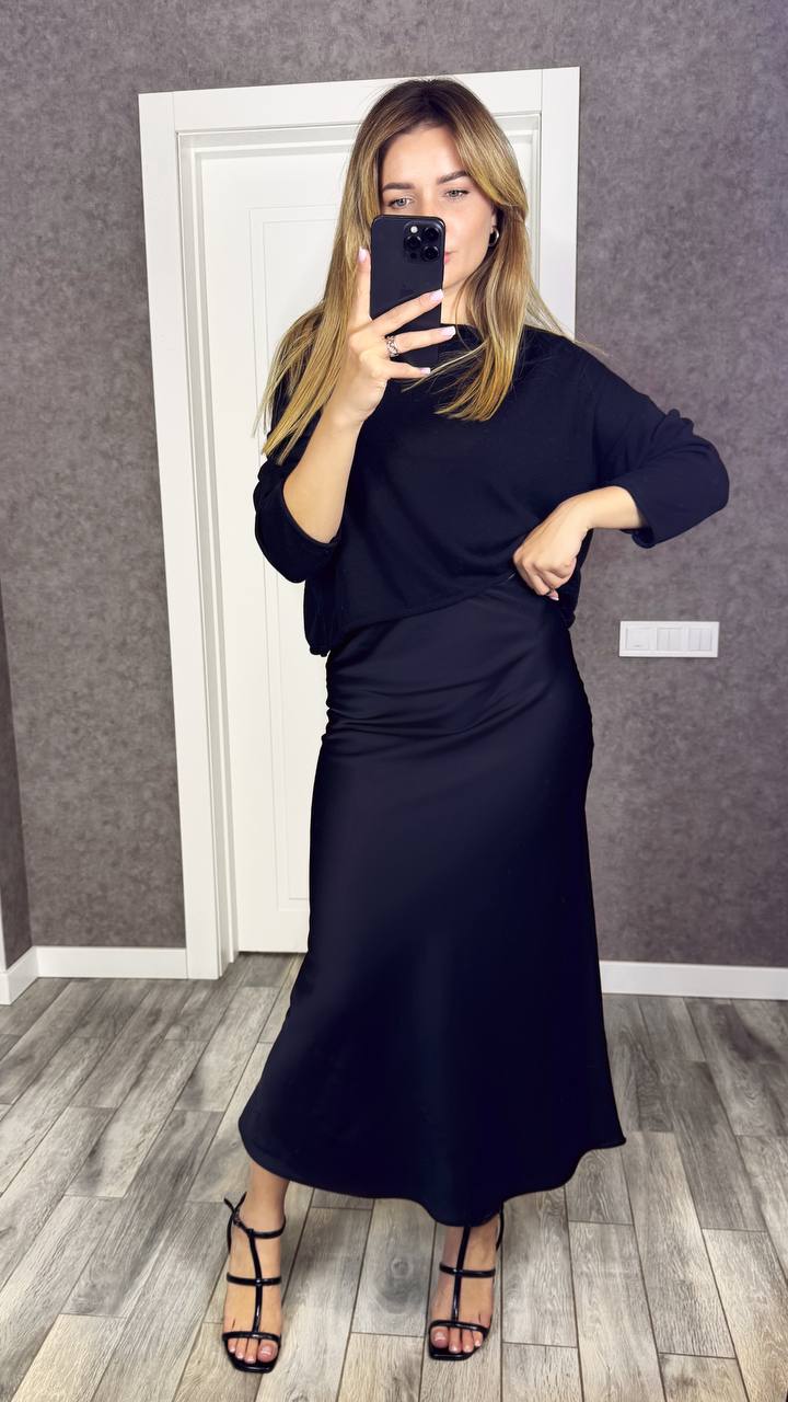 Юбка меди (талия на резинке) шелк «Армани» черный