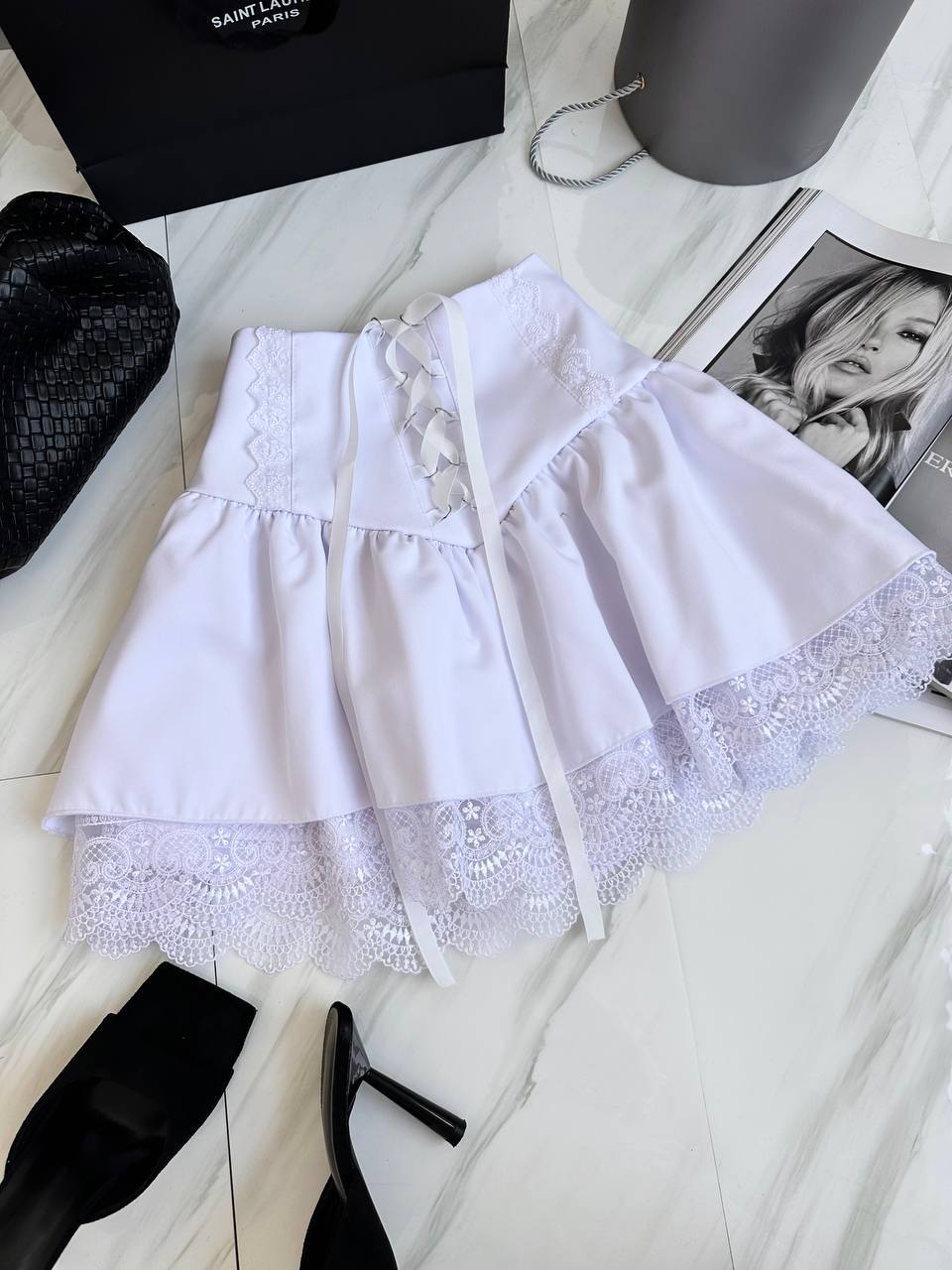 Юбочка с кружевом и шнуровкой в длине мини белый