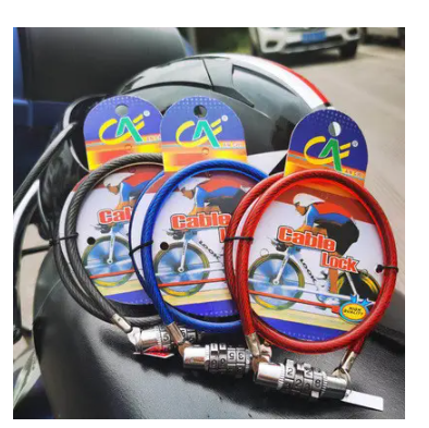 Велосипедный трос на замке открывается и закрывается с помощью кодового замка из 4 цифр.