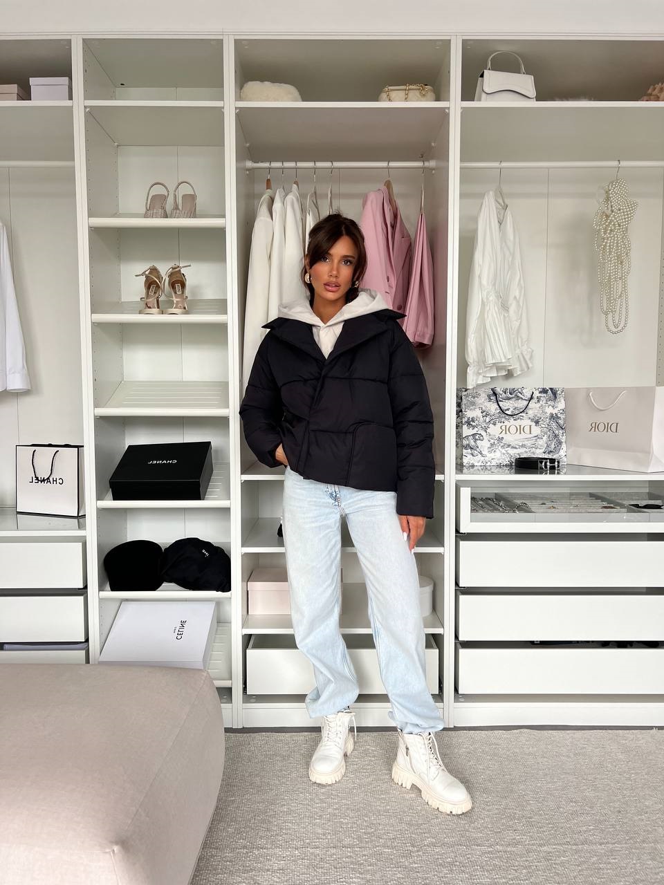 В нижней части кулиска, благодаря этому можно регулировать ширину и объем куртки.