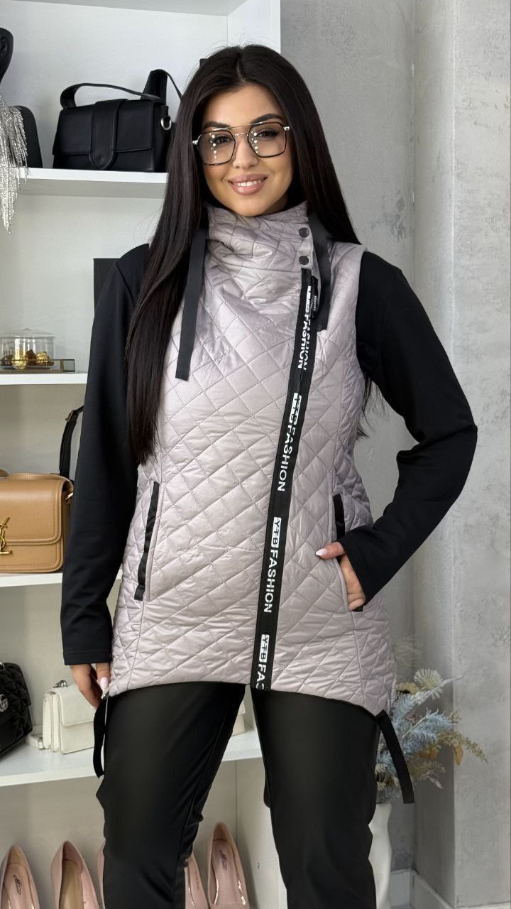 Будьте першим, хто залишив відгук “Женская стеганая жилетка с оригинальной молнией серый”“