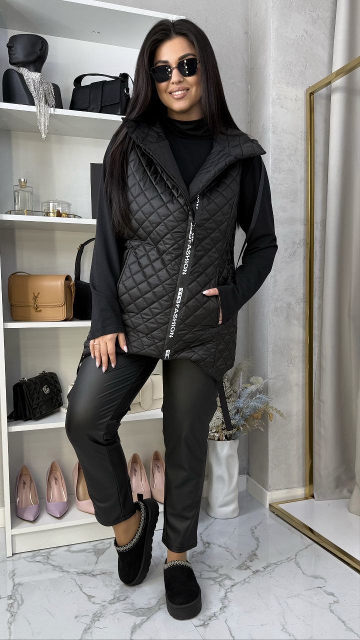 Будьте першим, хто залишив відгук “Женская стеганая жилетка с оригинальной молнией черный”“