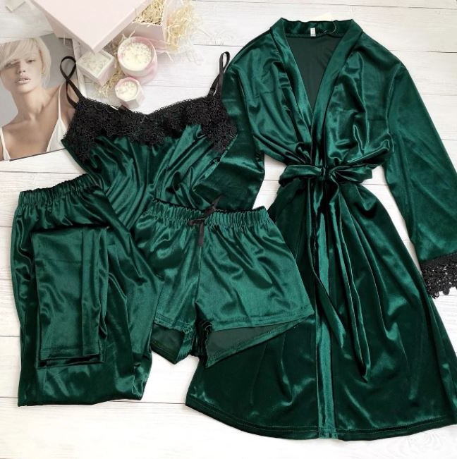 Женский приятный к телу комплект ЧЕТВЕРКА( майка, шорты, штаны и халат).