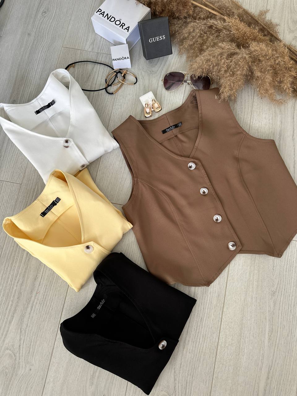 Жилетка хорошо сочетается как с классическими брюками или юбками, так и джинсами, создавая стильный образ для офиса или повседневной жизни.