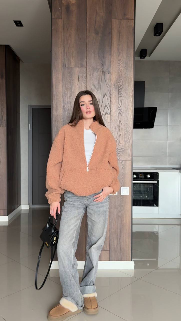 Женский худи с молнией (мех барашек) кемел