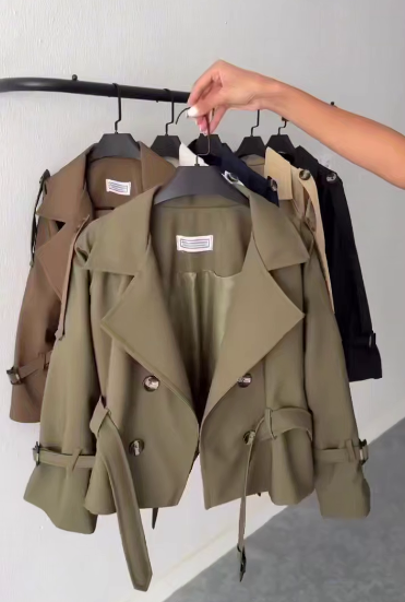 Головна » Магазин » Одяг » Жіночий верхній одяг » Женский короткий Тренч на подкладке хаки